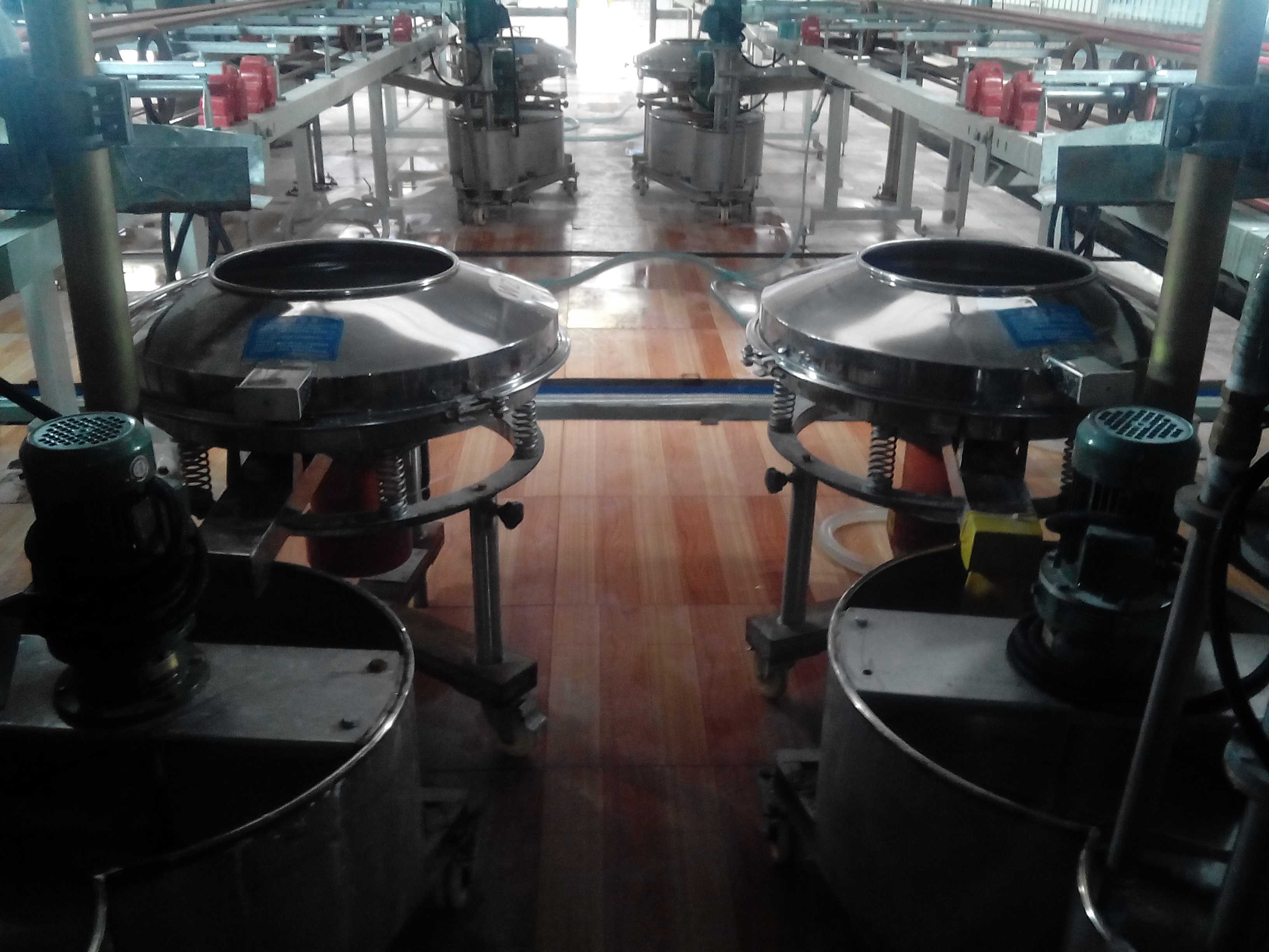 陶瓷釉料的過濾是采用我公司的高頻振動篩,根據陶瓷釉料的特性及過濾目的,我公司專門針對粘稠性較強的漿液物料的過濾除雜而設計的過濾篩分設備,高頻率的振動將漿液打散成分離狀的液體分子,更易于分離出其中的細小雜質。高頻振動篩在過濾陶瓷釉料的過程中,采用140目篩網,使用直徑800設備時每個小時的處理量在650公斤左右;目前陶瓷釉料最高采用325目篩網過濾。