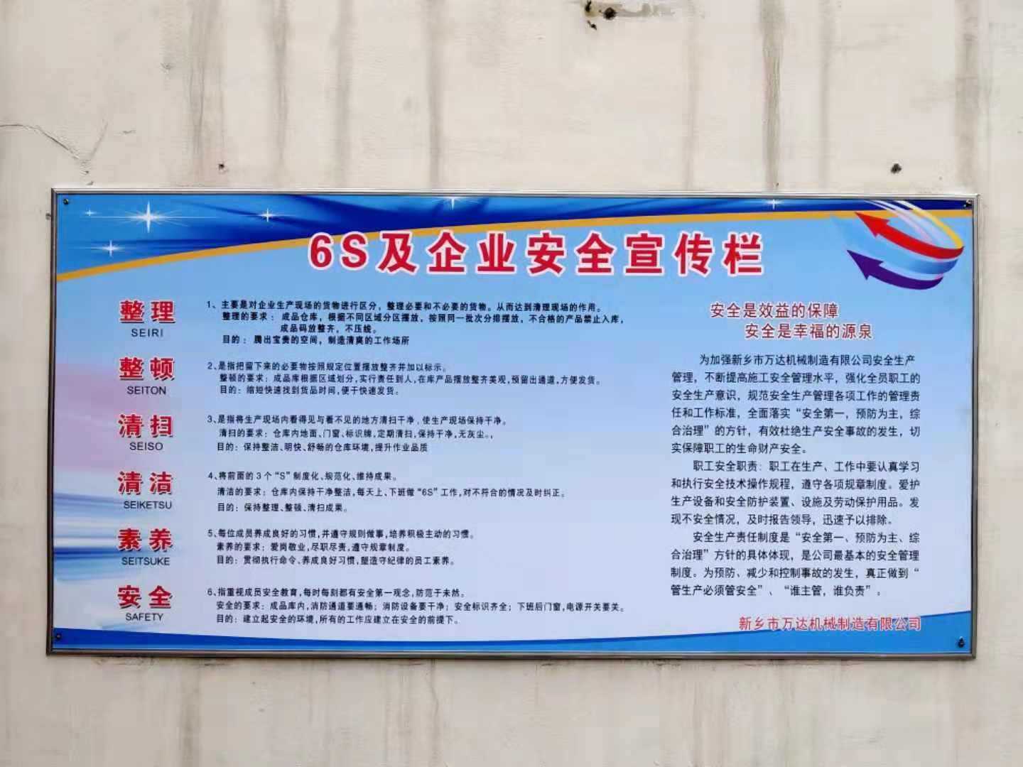為改善企業(yè)形象,提高人員素養(yǎng),提升萬達(dá)各生產(chǎn)車間現(xiàn)場(chǎng)管理水平,經(jīng)公司楊總研究決定:在萬達(dá)各生產(chǎn)車間大力推進(jìn)以“整理、整頓、清掃、清潔、素養(yǎng)、安全”為主要內(nèi)容的“6S”管理活動(dòng),要全面落實(shí)“安全第一,預(yù)防為主,綜合治理”的方針,有效杜絕生產(chǎn)安全事故的發(fā)生,切實(shí)保障萬達(dá)職工的生命財(cái)產(chǎn)安全,使各生產(chǎn)車間基礎(chǔ)管理工作更加扎實(shí),為萬達(dá)實(shí)現(xiàn)生產(chǎn)世界一流品質(zhì)的產(chǎn)品奠定堅(jiān)實(shí)基礎(chǔ)。
